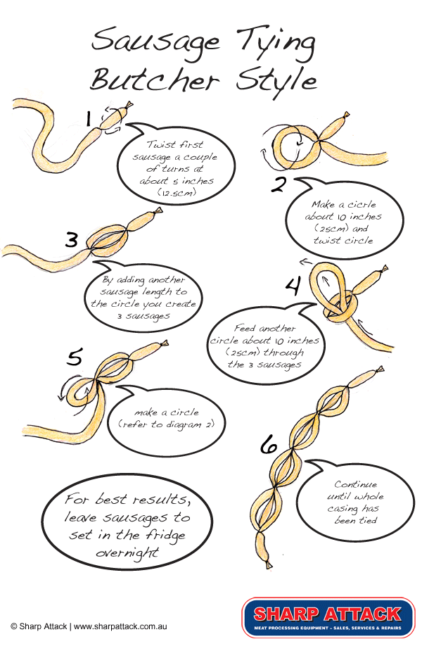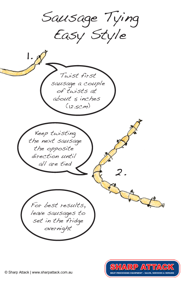 Below you will find some simple instructions on how to create your own professional looking tied sausages…